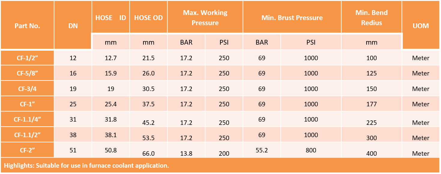 CARBON FREE HOSE / FURNACE COOLENT APPLICATION